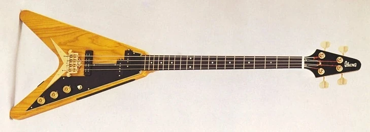 The 2387B-CT is a solid body electric bass model introduced by Ibanez for 1976. It was produced in Japan. It's visually similar to Gibson's Flying V model.
