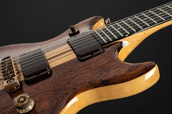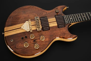 The 2710 is a cross between a 2618 and a MusicianMC300 mixing the Artist body and headstock shape with the neck-through-body "sandwich" construction and pickups of the Musician. It features body wings of laminated ash (top and back), maple and zebra wood mated to a seven piece maple and walnut neck running the full length of the guitar. The neck has a 24-fret ebony fingerboard with abalone dot position markers. Components include a pair of Ibanez Super 88 humbucking pickups mounted in integrated plastic covers each controlled with a Tri-sound switch, a Tune-o-matic style Gibraltar bridge mounted in a sustain block recessed into the neck, a Gibraltar slotted tailpiece with scalloped "cloud" ornament, a bone and brass nut, rubberized Sure Grip control knobs and VelveTune machine heads.