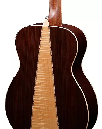 The AC535 features a grand concert body shape with a solid Sitka spruce top with maple binding on rosewood sides and a three piece rosewood and flamed maple back with wooden mosaic inlay and a gloss finish. The soundhole is round with an abalone rosette and a black pickguard. It has a mahogany neck with a 20-fret rosewood fingerboard with maple binding and maple dot position markers. Components include a compensated bone saddle in a rosewood bridge with Ibanez Advantage bridge pins, a bone nut, and chrome Grover die cast tuning machines with half-moon buttons.