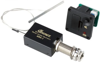 The AE200JR features a downsized AE Junior body with a Venetian cutaway constructed of a solid Sitka spruce top with scalloped cross-bracing on okume sides and back with Tone Projection cross bracing. It has a matte finish. The soundhole is round with an abalone and maple rosette. It has a satin-finished nyatoh neck with a 607mm (23⅞") scale and a 20-fret ovangkol fingerboard with white dot position markers. Components include a compensated plastic saddle in an ovangkol bridge with Ibanez Advantage pins, a plastic nut, and chrome open gear tuning machines. Electronics consist of a T-bar undersaddle pickup connected to an Ibanez AHA-1 preamp mounted internally with a ¼" endpin output.