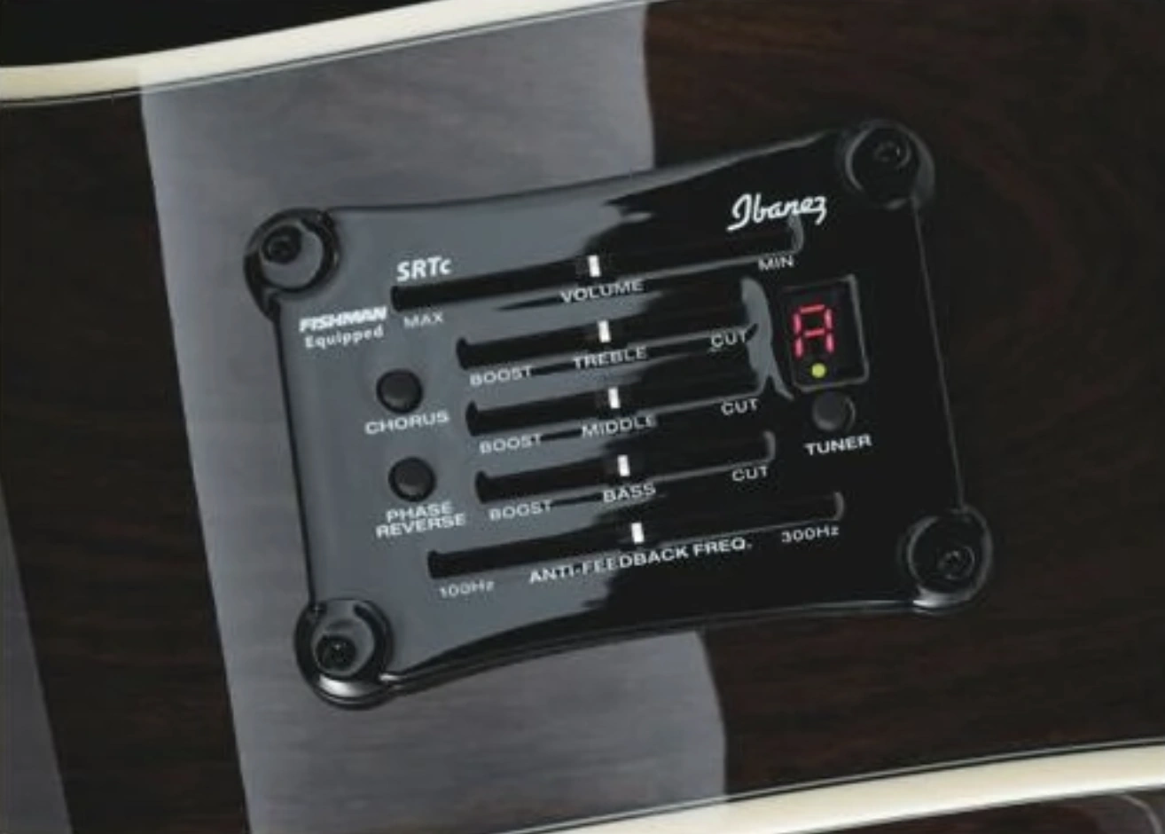 In mid-2006 the pickup was changed to the B-Band UST and the preamp was changed to the Ibanez SRTn preamp with notch filter. For 2011 the preamp was again changed, this time to the SRTc with chorus. For 2012 the pickup was changed to a Fishman Sonicore and yet another preamp change was made to an Ibanez AEQ-SST Shape Shifter and the Ivorex II nut and saddle were replaced with white plastic. For 2013 the tuners were changed to Ibanez die-cast units.