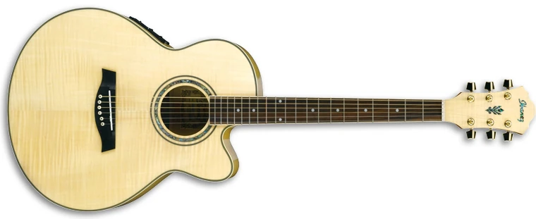 The AEL20E sold in the US features a jumbo-sized body with a Venetian cutaway constructed of a laminated flamed maple top on laminated maple sides and back mated to a mahogany neck with a 20-fret rosewood fingerboard with pearloid dot position markers. The soundhole is round with an abalone rosette. Common components include a compensated Ivorex II saddle in a rosewood bridge with Ibanez Advantage pins, an Ivorex II nut, and gold Ibanez Smooth Tuner AS tuning machines.