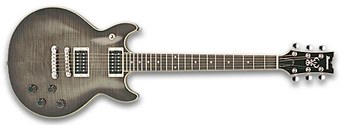 The AR250 features a flamed maple top with cream binding on a mahogany body mated to a set-in maple neck with a 22-fret rosewood fingerboard with cream binding and dot position markers. Components include a Tune-o-matic style Full Tune II fixed bridge and Quik Change III tailpiece and dual Ibanez Axis humbucking pickups with individual volume and tone controls.