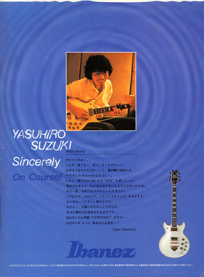 While the AR550 is not a signature guitar, it is closely associated (especially in Japan) with Yasuhiro Suzuki (ja: 鈴木康博), who was known for his work with the band Off Course (ja: オフコース). The change from individual Tri-sound switches to a single duo-sound switch was made at Suzuki's request to simplify switching in a live setting. The passive tone control was removed to minimize noise and high frequency loss in the complex circuit.[1]