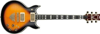 The AR720FM features a flamed maple top with abalone purfling and creme binding on a mahogany body mated to a set-in maple neck with a 22-fret ebony fretboard with abalone binding and split block position markers. Components include a Gibraltar fixed bridge with a sustain block, dual Ibanez Super 80 humbucking pickups with "Flying Finger" gold covers and individual volume and tone controls wired to Tri-sound switches which allow a wide range of tone options, gold Sure Grip III knobs, Ibanez Smooth Tuner AS tuning machines and a bone nut.