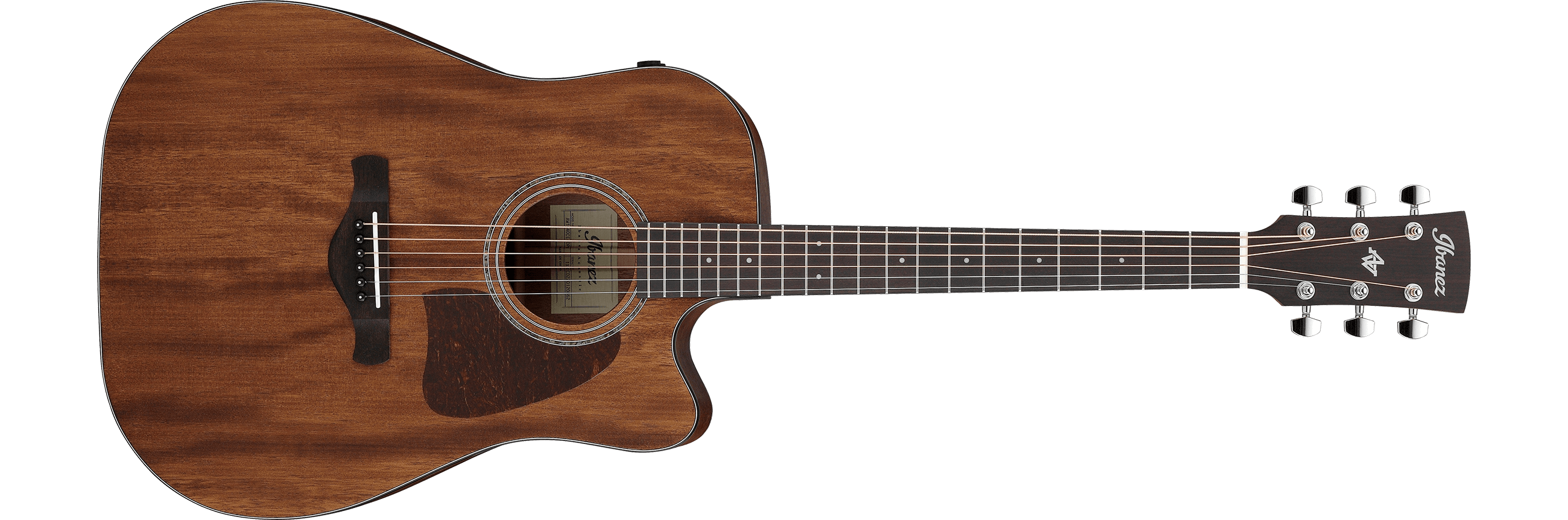 The AW1040CE features a cutaway dreadnought body shape with a solid okoume top on okoume back and sides with an open pore finish. The soundhole is round with an abalone rosette and a red tortoise pickguard. It has a satin finished nyatoh neck with a 20-fret ovangkol fingerboard with black binding and small white dot position markers. Components include a compensated bone saddle in an ovangkol bridge with black Ibanez Advantage bridge pins, a bone nut, and chrome Ibanez die-cast tuning machines. Electronics consist of an Ibanez Custom Electronics preamp with volume and tone controls, a T-bar undersaddle pickup and ¼" endpin output.