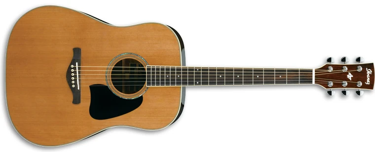 The AW370ECE is an acoustic-electric version with a cutaway body. The AW300 is a similar model with a solid Engelmann spruce top and mahogany back. The AW500 model with a solid Sitka spruce top and a yellow brown tortoise pickguard.