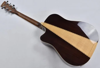 The AW535CE features a dreadnought body shape with a soft Venetian cutaway constructed of a solid Sitka spruce top with maple binding on rosewood sides and a three piece rosewood and flamed maple back with wooden mosaic inlay and a gloss finish. The soundhole is round with an abalone rosette and a black pickguard. It has a mahogany neck with a 20-fret rosewood fingerboard with maple binding and maple dot position markers. Components include a compensated bone saddle in a rosewood bridge with Ibanez Advantage bridge pins, a bone nut, and chrome Grover die cast tuning machines with half-moon buttons.