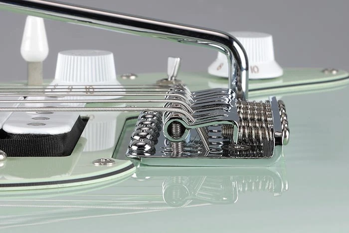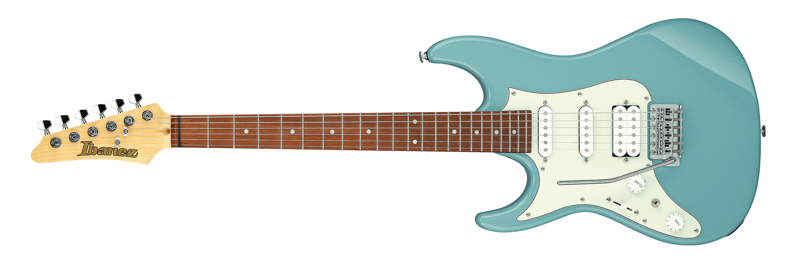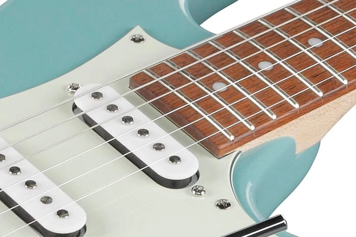 The AZES40L features a poplar body bolted to a maple neck with a jatoba fingerboard and white dot position markers. Its slightly shorter 25-inch scale length makes the AZES ideal for younger or smaller players. Components include, a T106 non-locking tremolo bridge with comfort round steel saddles, an Accord humbucker at the bridge and a pair of Essentials single-coils in the middle and neck positions, and die-cast tuning machines. An "Alter" switch provides access to series-connected voices and more.