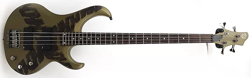 The BTB07LTD features an agathis body bolted to a maple neck with a 24-fret rosewood fingerboard with pearl dot position markers. The body has a double cutaway design with very distinctive, narrow, curving horns. Components include a pair of Ibanez DX passive pickups with a PHAT II EQ, a B100 bridge with 19mm string spacing, a stereo output jack, a plastic nut and Ibanez tuning machines. It is finished in Damped Green Flat with a "Wild X" pattern across the front of the body in dark green.