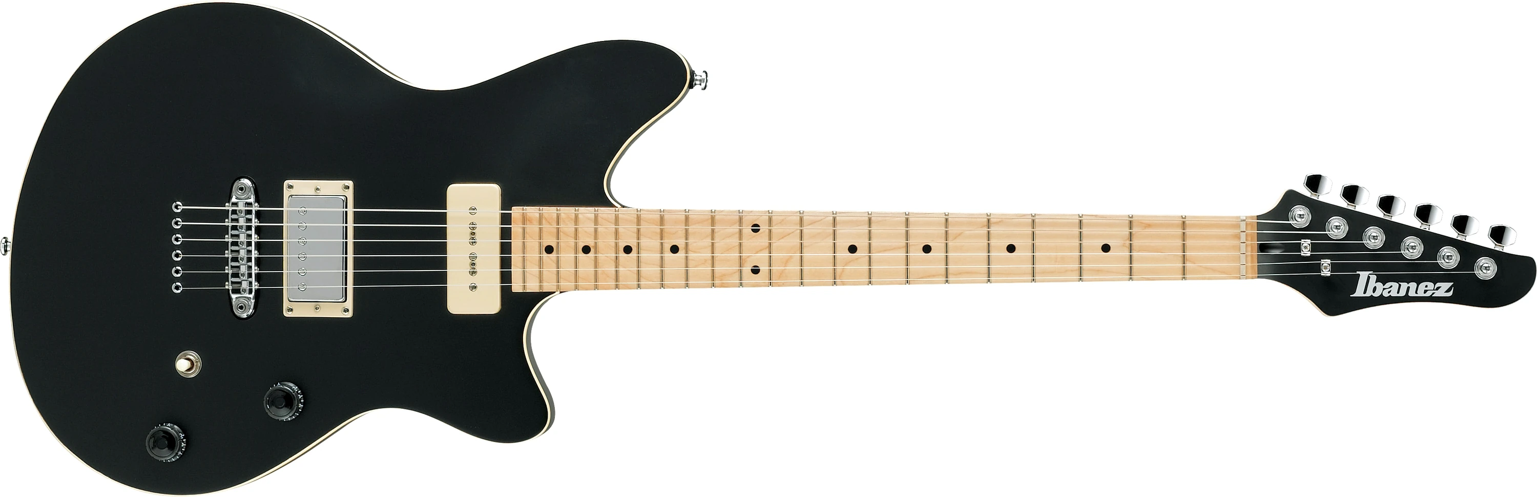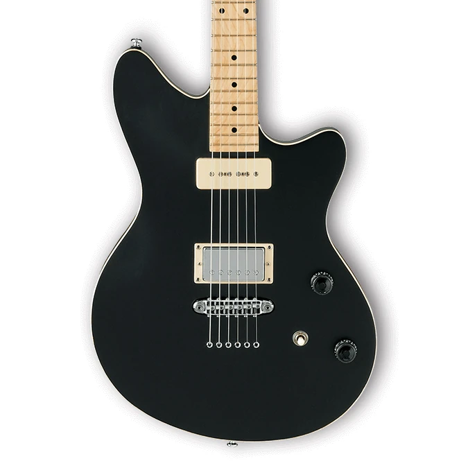 The CMM2 has a mahogany body bolted to a maple neck with a 22-fret maple fingerboard with dot position markers. Components include a Tight Tune fixed bridge with through-body string routing and Ibanez pickups with a soapbar-type single-coil in the neck position and a covered humbucker in the bridge with a coil-split switch on the tone control. Each guitar also features an autographed control-cavity plate.