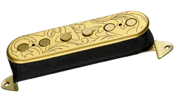 "Designed to match the sound and aesthetics of the UtoPIA Neck and Bridge for a modern-looking single coil, the satin gold-plated UtoPIA Middle pickup features the same etched pattern as the laser-cut Neck and Bridge pickups.