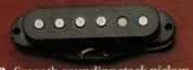 The Injector neck model has a modern rather than a vintage sound. It’s warmer and louder (160mV output) than a typical vintage single-coil and — of course — it’s hum-canceling. It’s also faster. The Injector neck model tracks high-speed solos at high gain without becoming either thin or muddy, and has a very full, well-balanced, clean sound. It has about 40% less magnet-pull than standard single-coils, and this is essential for the superior speed and dynamic range with which this pickup responds to pick attack.[47]