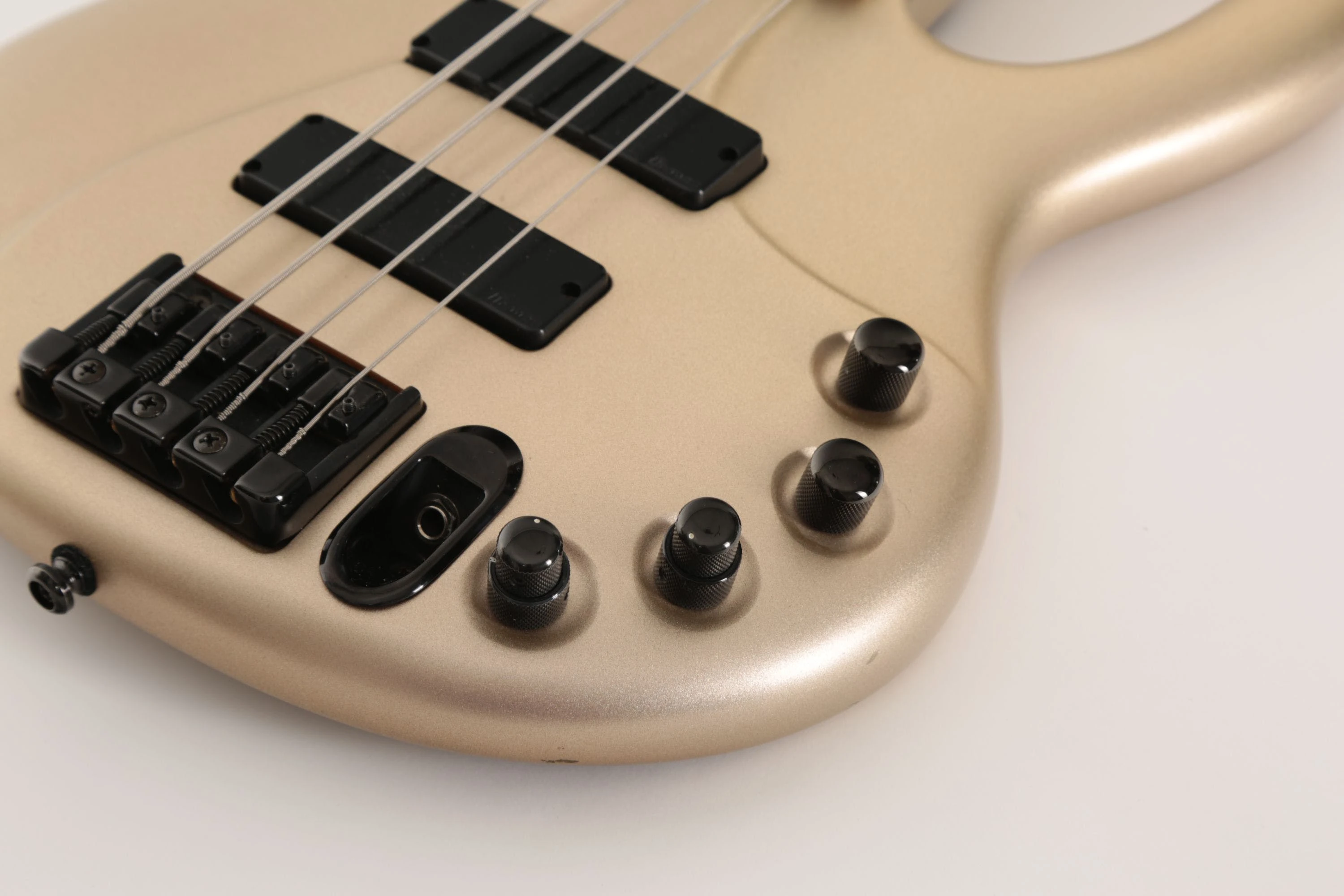 The EDC700 features a double-cutaway sculpted luthite body with a long upper horn bolted to a maple neck with a 24-fret maple fingerboard with white dot position markers and a matching headstock. Components include a pair of Ibanez SFR-S (N/B) passive pickups with a Vari-mid preamp with a 3-band EQ, an Accu-cast B20 fixed bridge with 19mm string spacing, a plastic nut, black hardware and Ibanez die-cast tuning machine.