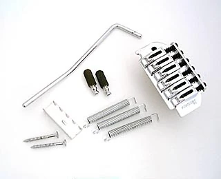 The FAT-10 slots between the FAT-6 and FAT-20 among Ibanez synchronized tremolo units and is used on several budget-friendly GIO models in the RX, RG and S series. It's available in chrome (part number 2FA1C10C) or black (2FA1C10B) finishes for right-handed guitars and in chrome only (2FA1C10LC) for lefty guitars.