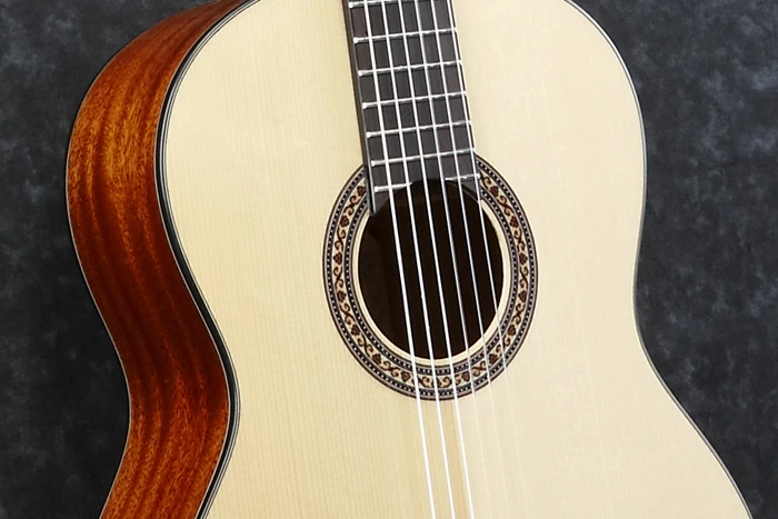 The G10 features a classical body with a solid Engelmann spruce top with fan bracing on mahogany back and sides with a low gloss finish. The soundhole is round with a classical mosaic decal rosette. It has a mahogany neck with a 19-fret rosewood fingerboard with no position markers and a slotted headstock. Components include a bone saddle in a 12-hole classical rosewood bridge, a bone nut, gold classical tuning machines and Savarez nylon strings.