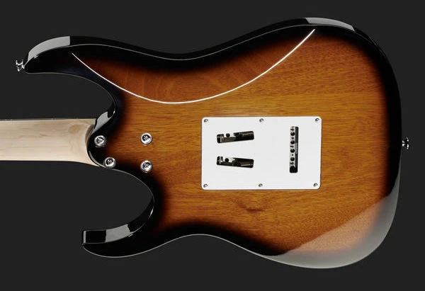 The GRG140 features a non-locking synchronized tremolo bridge and Ibanez pickups in an HSS configuration. The parts specifications where significantly changed in 2013 and again in 2015.
