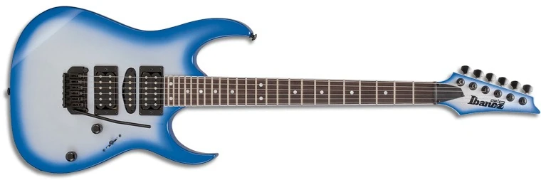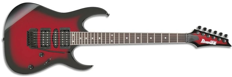 The GRG180 is similar to the GRG170, but has black hardware and different finishes. Other features include a basswood body, maple neck, standard pickups and the FAT-10 synchronized tremolo bridge.
