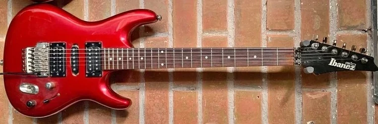 The GXR370 is a bit of an amalgamation of the classic Radius model and the Ergodyne series. The GXR370 is the only GXR model ever made. It features a basswood body bolted to a maple neck with a 22-fret rosewood fingerboard with white dot position markers. Components include Ibanez pickups with a pair of humbuckers flanking a single-coil and an Edge III double locking tremolo bridge.