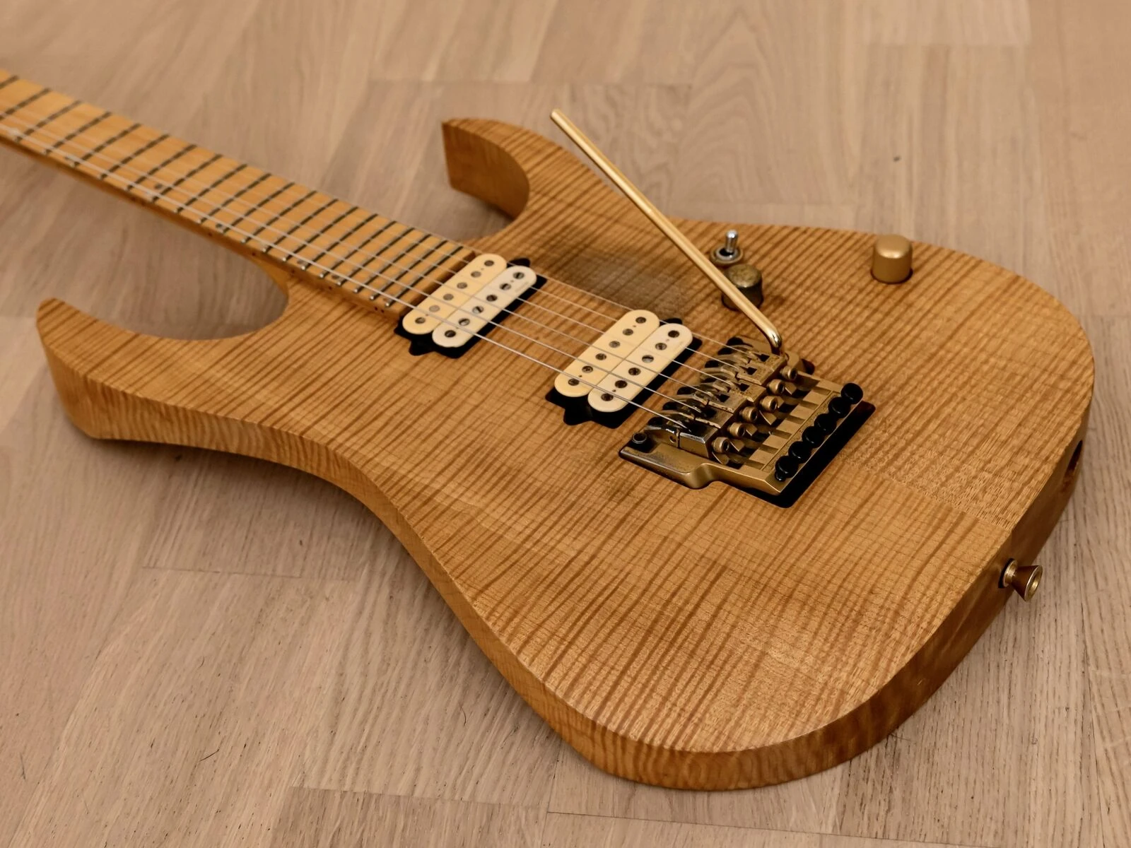 This is one of just a handful of Ibanez production models with a solid flame maple body rather than just a top or veneer. Others include the RG1808, the RG2808 and the HRG1802/ HRG1802S.