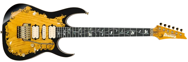 The JCRG1501 features a two-piece ash body topped with a 4mm thick ash top bolted to an asymmetric maple and bubinga neck with a 24-fret ebony fingerboard with Tree of Life inlays. Components include cream-colored DiMarzio pickups with two humbuckers flanking a single-coil, an Edge Zero double locking tremolo bridge with a removable tuning stabilizer system, a locking nut, Gotoh locking strap pins and Gotoh tuning machines.