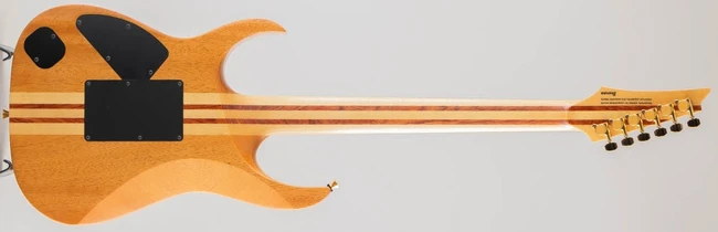 Ibanez prototype JCRG17 ( Rear: Neck through body construction with Mahogany wings mated to a 5-piece maple/ bubinga JCRG Super Wizard neck and gotoh machine heads )