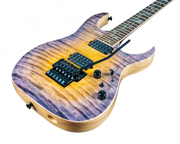The JCRG22S10 features swamp ash body with (4mm) exotic maple top by bolted to a wenge and purpleheart asymmetric super wizard neck with a 24-fret wenge fingerboard with pearl and abalone Tree of life inlays and luminlay side dots. Components include a set of DiMarzio Fusion Edge humbucking pickups, a Lo-Pro Edge double locking tremolo bridge, Gotoh machine heads, Gotoh Strap lock pins and black hardware.