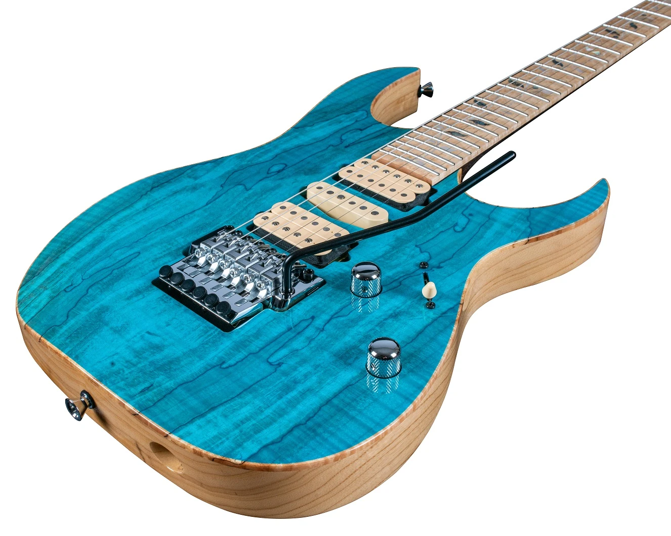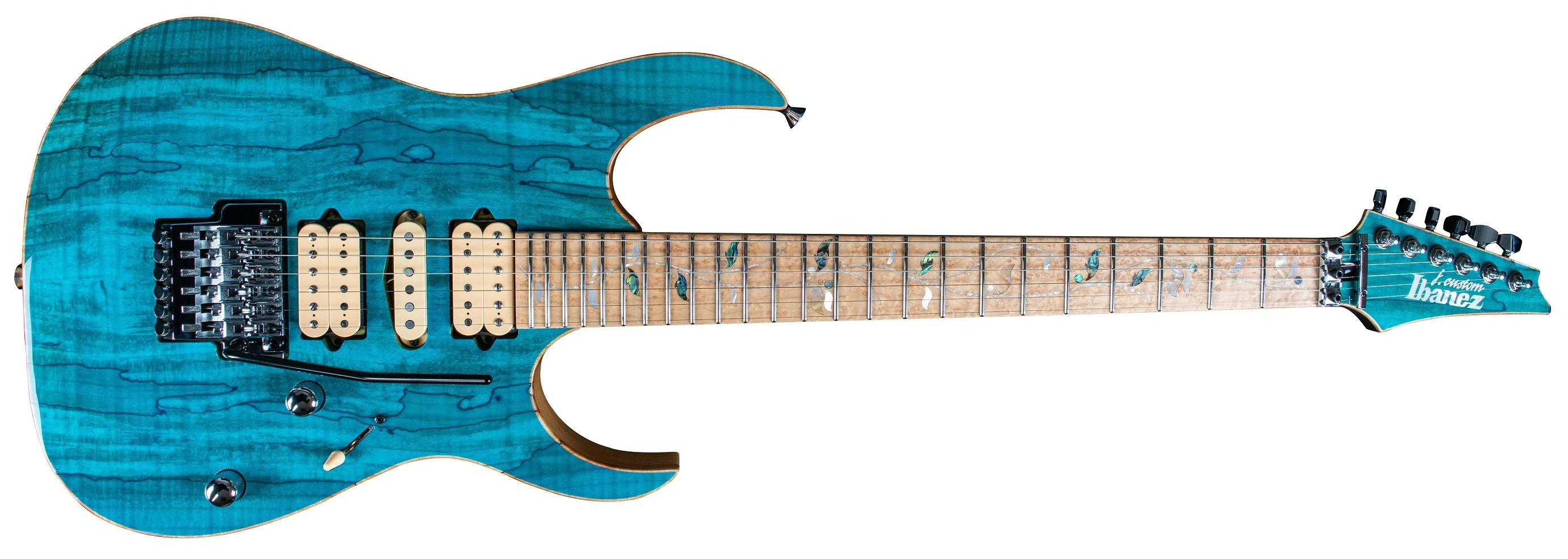 The JCRG22S11 features alder body with (4mm) spalted maple top bolted to a wenge and purpleheart asymmetric super wizard neck with a 24-fret birdseye maple fingerboard with mother of pearl tree of life inlays and luminlay side dots. Components include a set of DiMarzio pickups, a Lo-Pro Edge double locking tremolo bridge, Gotoh machine heads, Gotoh Strap lock pins and chrome hardware.