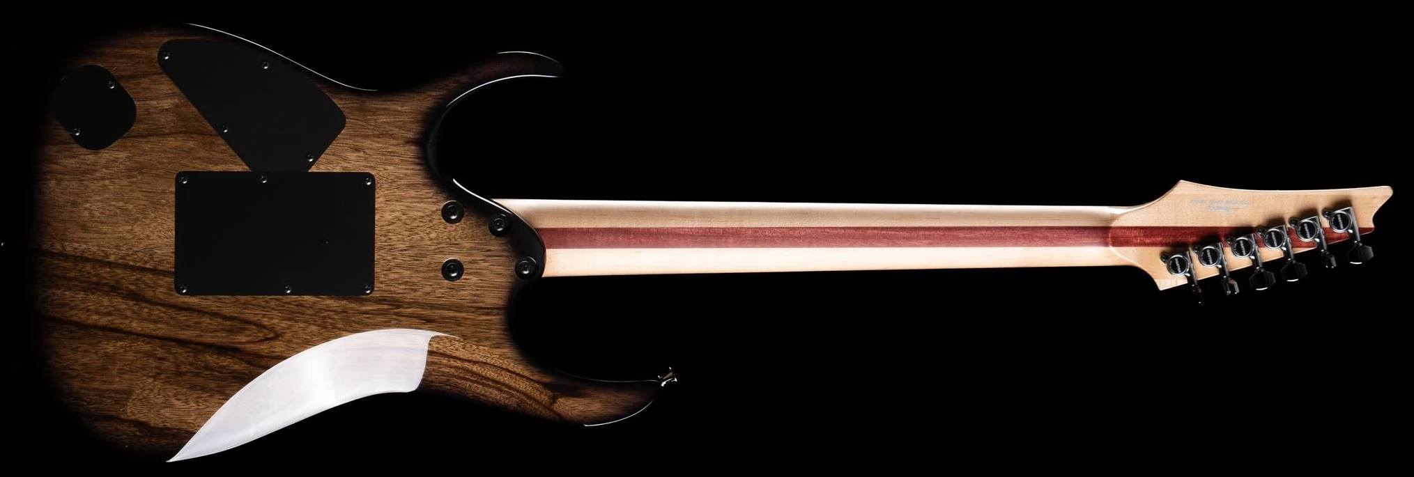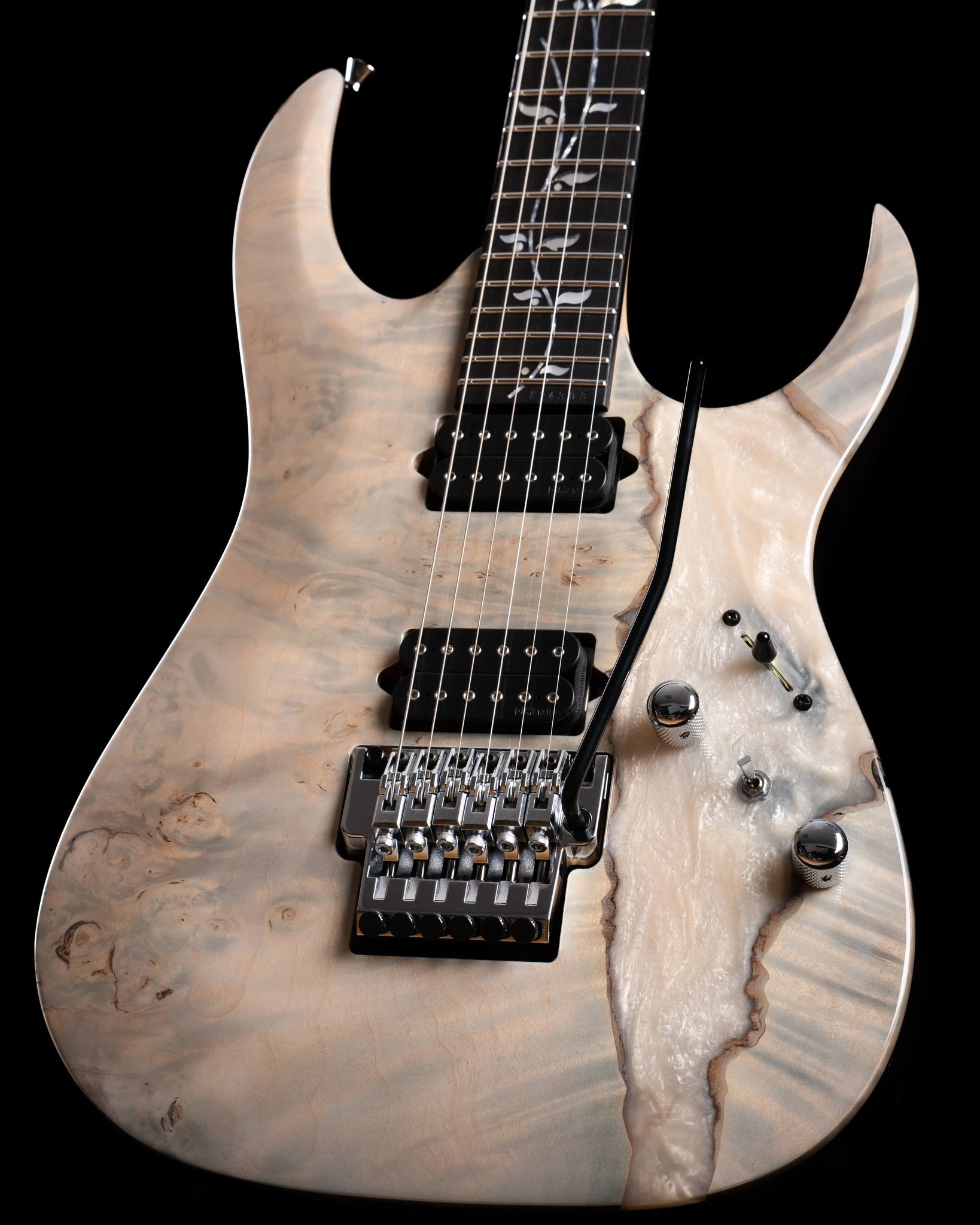 The JCRGA2501 features an exotic maple top with white resin fillings on a spectacular black limba body bolted to a maple and purpleheart neck with a 24-fret ebony fingerboard with Tree of Life inlays. Components include a pair of passive DiMarzio Fusion Edgehumbucking pickups on the neck and bridege positions, a Lo-Pro Edge double locking tremolo tremolo bridge, chrome hardware and Gotoh tuning machines and includes a hardshell case and certificate of authenticity.