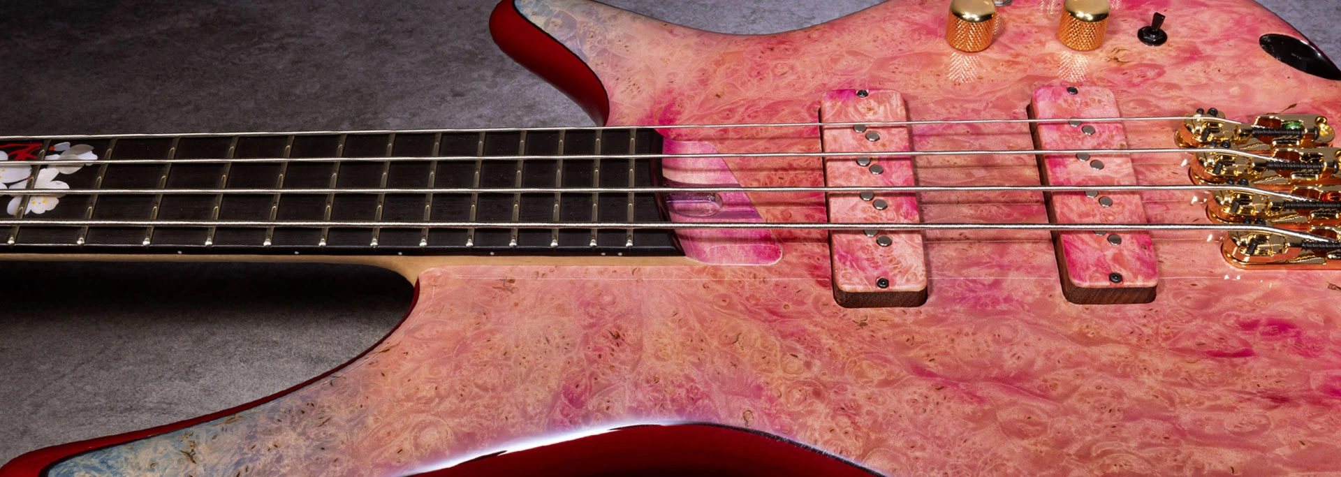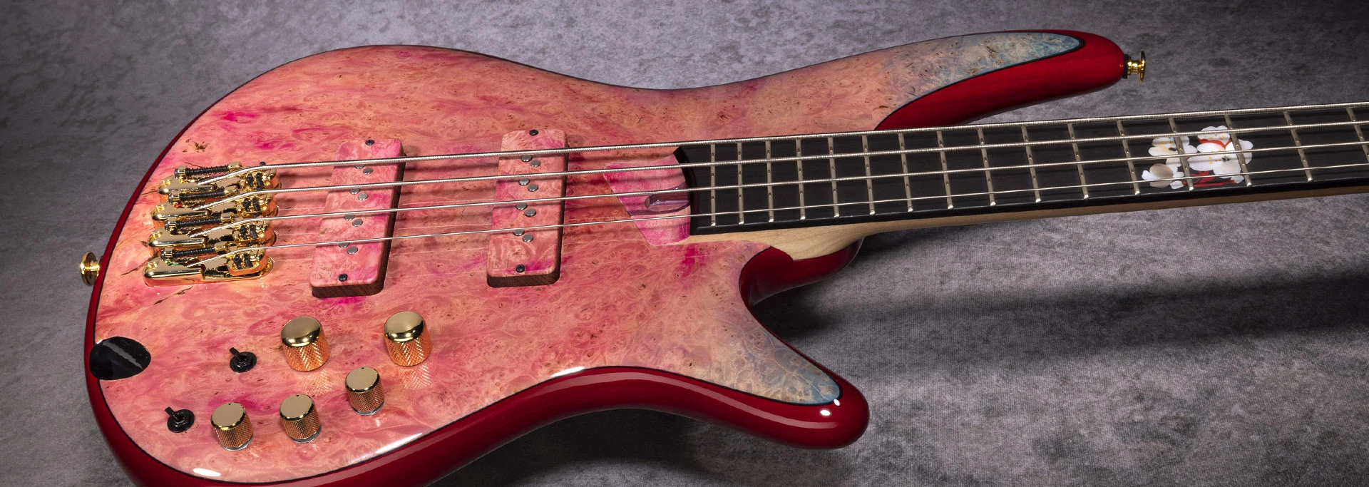 This bass is a beautiful example of the Japan Custom Shop team combining the venerable SR design with captivating visuals meant to reflect the mood and splendor of spring. As such, they opted to name it HARU, which is Japanese for "Spring". Another principal inspiration for this bass is the is the blooming of the weeping cherry tree, or Shidarezakura, in Japanese.