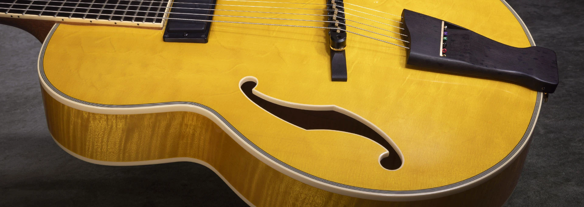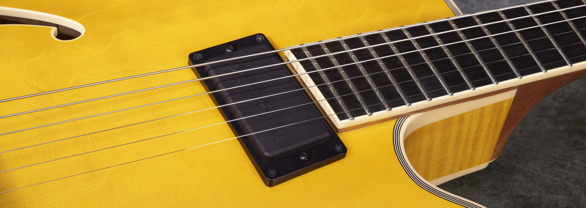 The first and most noticeable difference to other Ibanez jazz guitars is the multi-scale construction. The spread on scale lengths is 24.75” on the high E and 25.5” on the low E. The benefits offered are ergonomic as well as tonal.
