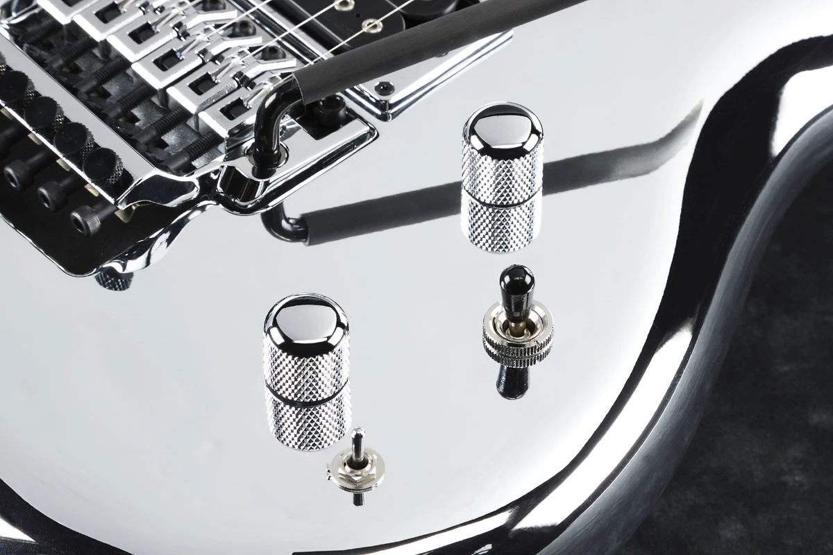 The JS1CR30 is the fourth attempt at a guitar with a chrome finish after the original JS2 from 1990 and the JS10th from 1998 and the second JS2 from 2005. Satriani has always wanted such a guitar, but producing a guitar with a durable chrome finish has been a challenge. This is the first chrome JS guitar with 24 frets.
