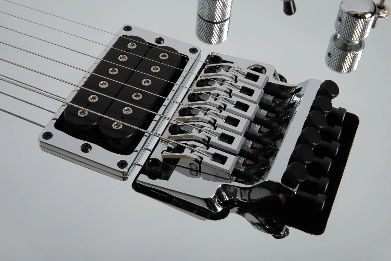 The JS1CR30 features an alder body bolted to a maple and bubinga neck with a 24-fret rosewood fingerboard with mother of pearl dot position markers. Components include an Edge double locking tremolo bridge with a locking nut and an Ultralite tremolo arm and a DiMarzio Satchur8 humbucking pickup in the bridge position.