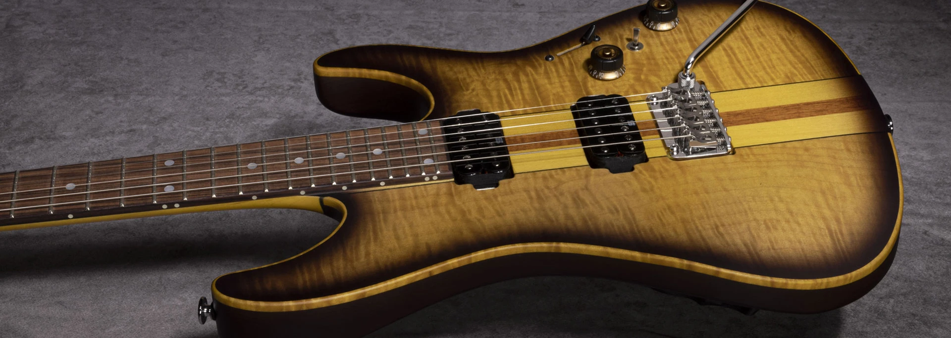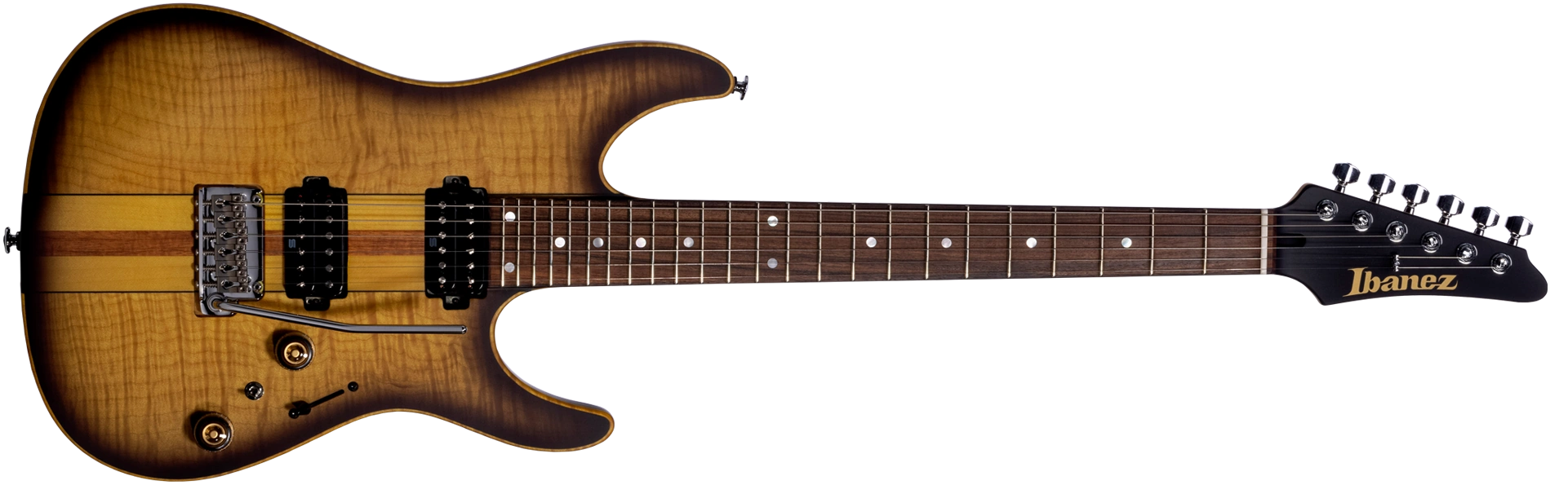 2022 Ibanez LACS3 - "GOLDEN EAGLE" ( Rear: neck-through-body construction with Swamp Ash body attached to a 3pc Maple/Purpleheart - Half Round neck and Gotoh Locking tuning machines )