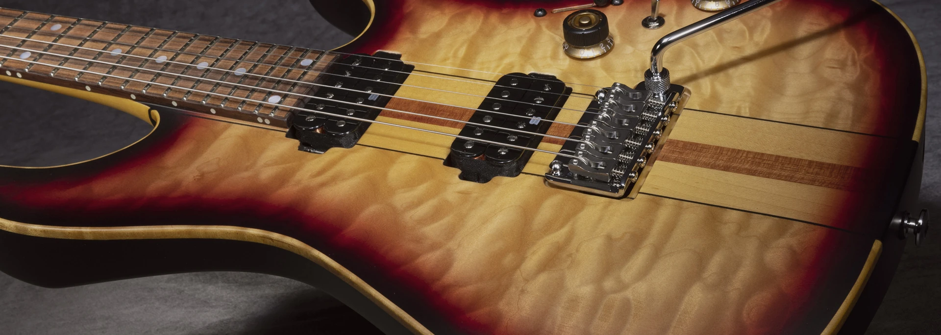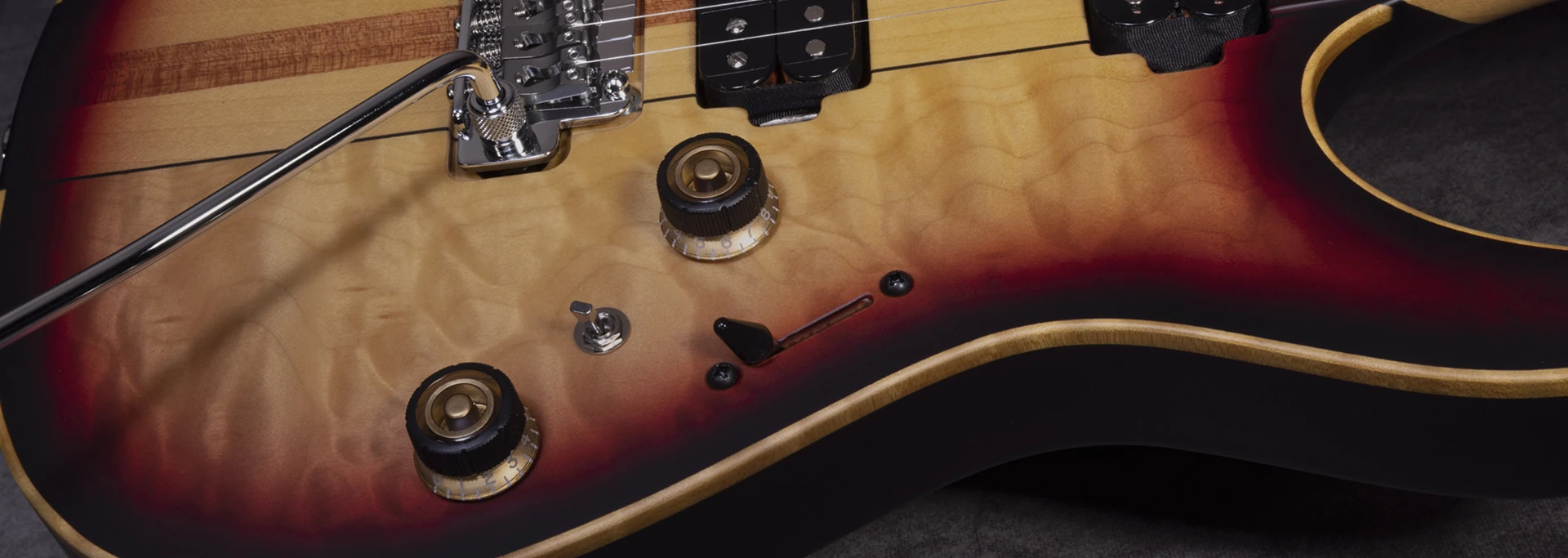 2022 Ibanez LACS4 "OLVERA" ( Rear: Neck-through-body construction with Swamp Ash body attached to a 3pc Maple/Purpleheart - Half Round neck and Gotoh Locking tuning machines )