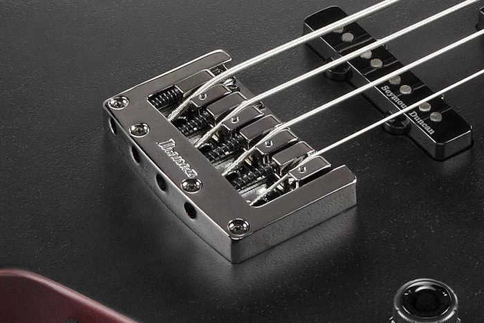 The MDB5 features a Destroyer series okume body bolted to a maple neck with a 22-fret rosewood fingerboard with a seven pointed star logo at the twelfth fret. Components include a pair of Seymour Duncan passive bass pickups with a J-bass pickup at the bridge and a P-bass pickup at the neck, an Accu-cast fixed bridge, a plastic nut and Ibanez tuning machines. Controls consist of a master volume and a balancer on the front along with a master tone control on the rear cavity cover.