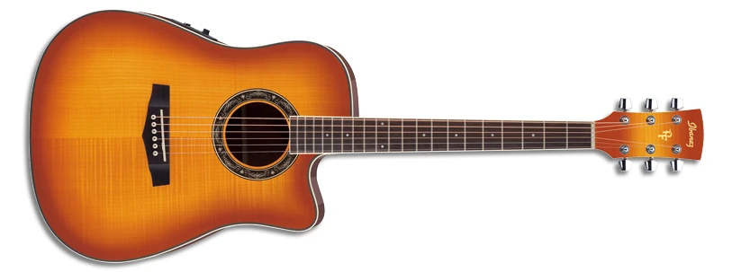 The PF28CE is a similar model with a spruce top and different electronics. The PF28 is a full acoustic version with a spruce top and without the cutaway body.