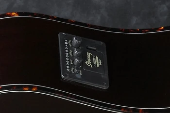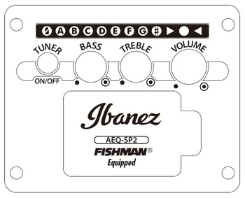 Electronics consist of a Fishman Sonicore undersaddle pickup connected to an Ibanez AEQ-SST Shape Shifter preamp with onboard tuner powered by a 9V battery and feeding balanced XLR and ¼" stereo outputs.