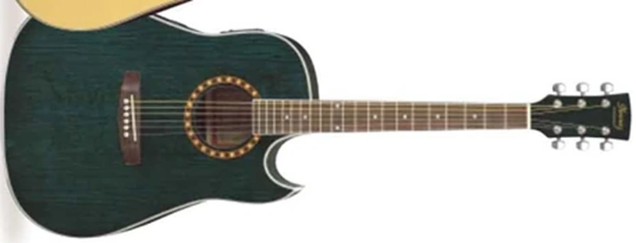 The PF400CE is a similar model with sycamore top. The PC300CE is a related acoustic model with mini-jumbo body.