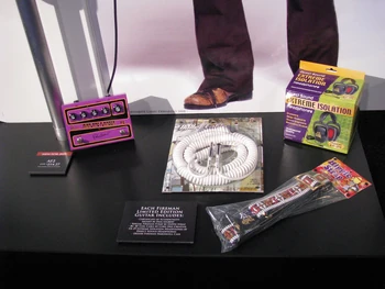 The guitar comes packaged with a number of accessories including a pair of Direct Sounds model EX-29 extreme isolation headphones, a Bullet Cable BC-25CCW 25' white coil cable, a "hippie" strap, a Paul Gilbert/ Fireman pick, a certificate of authenticity signed by Gilbert, and a deluxe hardshell case.