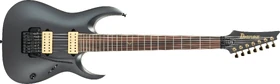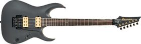 The JBM line consists of four models as of 2020. All four are based on the arched-top super-Strat RGA body. The first three models are visually similar with a reversed headstock (they are the first production RGA models with this feature), black finish with black hardware except for the machine heads, which are gold. They all feature DiMarzio Titan pickups, a Floyd Rose-style tremolo and a simple control setup eschewing a tone control. The fourth model has a white finish and fixed bridge. (more...)