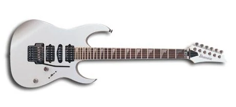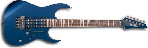 The RG2570EX features a basswood body bolted to a maple neck with a 24-fret bound rosewood fingerboard with deluxe sharktooth position markers. Components include two DiMarzio/IBZ humbucking pickups flanking a DiMarzio/IBZ single coil, an Edge Pro double locking tremolo bridge with a locking nut and Gotoh tuning machines.