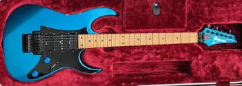 Like the JEM, the RG550 has a basswood body, a thin maple neck and a double locking Floyd Rose style tremolo bridge. Instead of the JEM's DiMarzio pickups, the RG550 is equipped with American designed Ibanez Vintage pickups. In place of the JEM's disappearing pyramid fretboard inlays, the RG550 has simple dots.