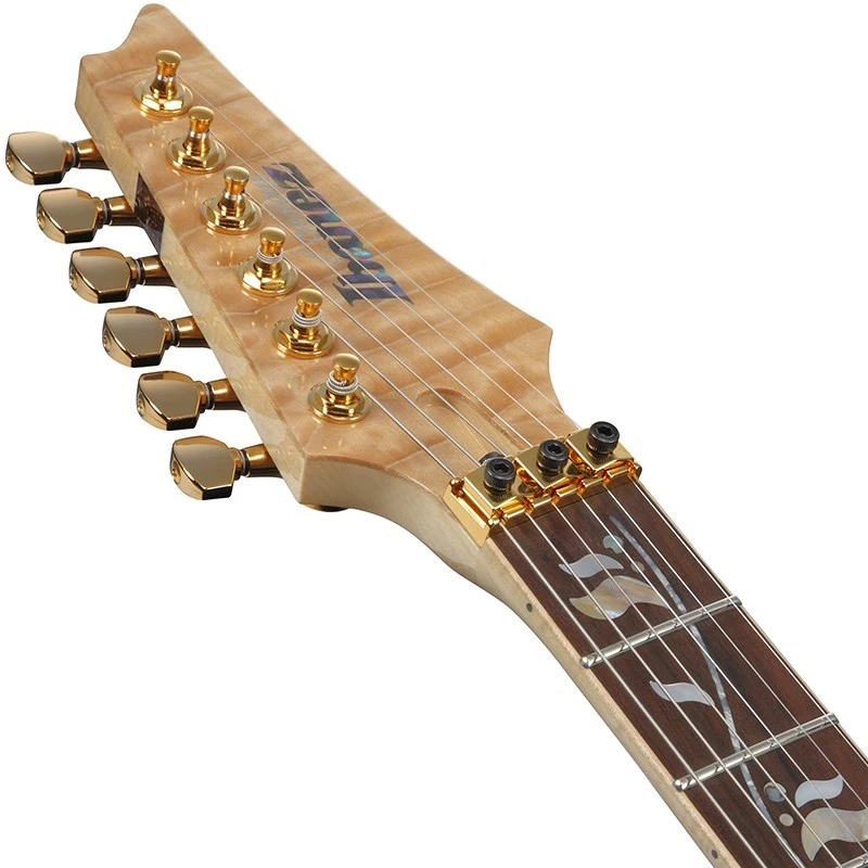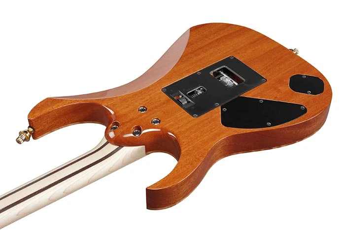 The RG8570ZQM features a 4mm thick AAAAA quilted maple top on African mahogany body bolted to a maple and wenge neck with a Macassar ebony fingerboard with 24 stainless steel frets, Tree of Life inlays, and Luminlay side dots. Components include a set of DiMarzio pickups with a with Air Norton and The Tone Zone humbuckers flanking a True Velvet single-coil, an Edge Zero double locking tremolo bridge with removable ZPS3 tuning stabilizer, and gold hardware with Gotoh tuning machines and locking strap pins.