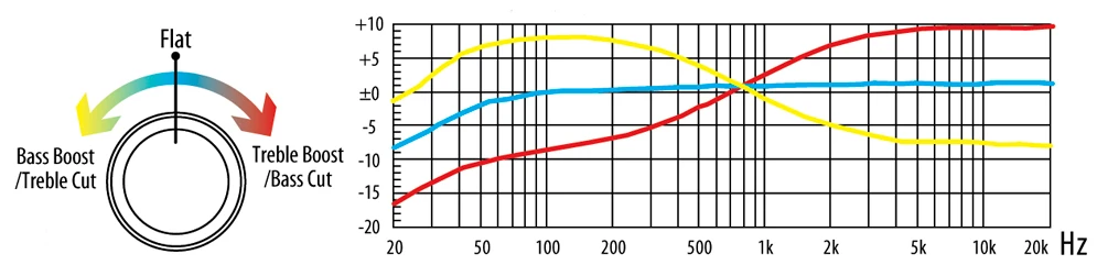 In place of the typical tone knob, the RGA420Z has an Active EQ controlled with the Active EQ knob. This EQ allows for everything from a bass boost/treble cut to treble boost/bass cut in a sooth and natural curve.