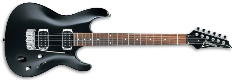 The SA120 features a mahogany body, dual Ibanez Axis humbucking pickups and a non-locking synchronized tremolo bridge.