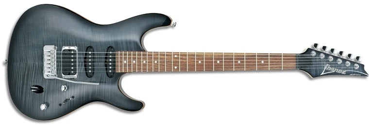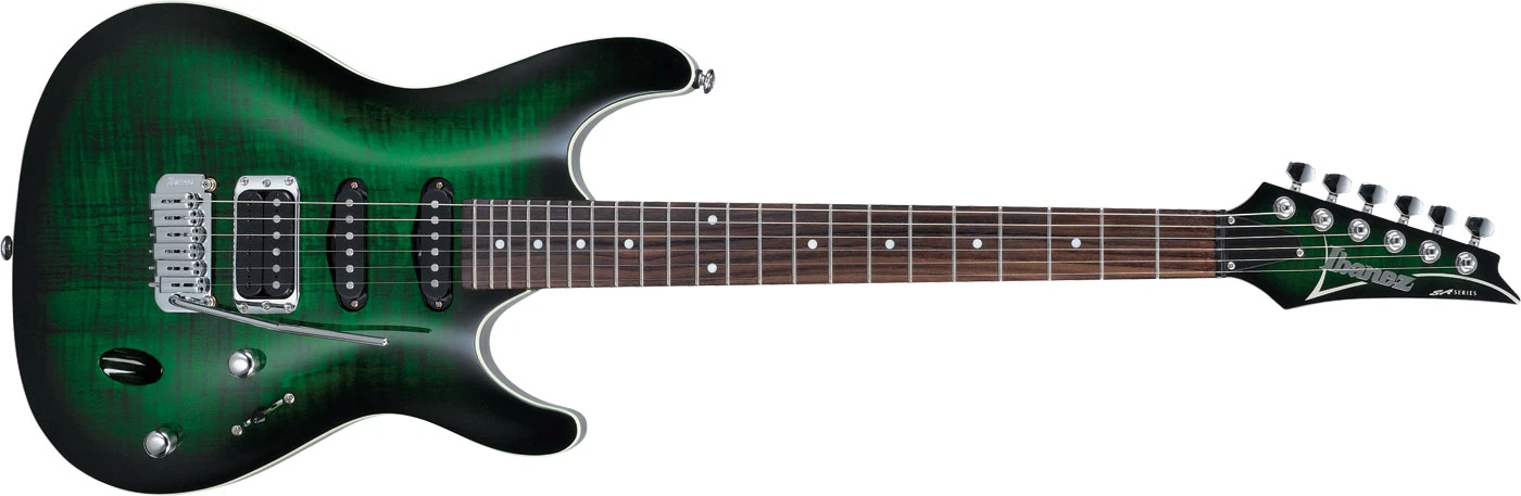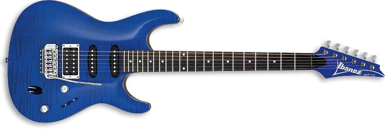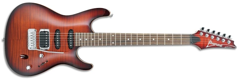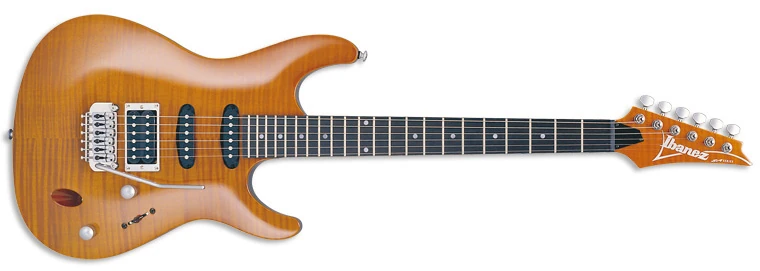 In terms of specifications, the SA260FM has gone through several changes, but consistent features include a flamed maple top, Ibanez pickups with a humbucker in the bridge position and single-coils in the neck and middle positions and a non-locking synchronized tremolo.