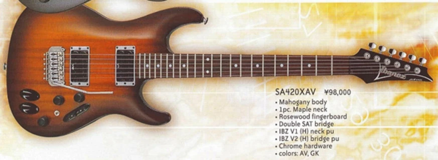The SA420X is an SA series solid body electric guitar model introduced by Ibanez for 2002. It is one of only a small handful of models in the SA series that was made in Japan by FujiGen.