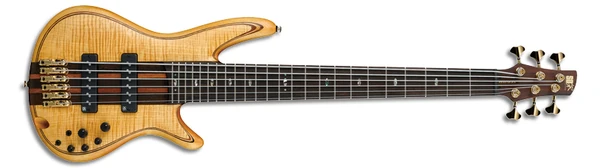 The SR1406TE features neck through body construction with a figured maple top on a mahogany wings attached to a titanium reinforced wenge and bubinga neck with a 24-fret rosewood fingerboard with binding and oval abalone position markers. Components include a pair of Nordstrand Big Single passive pickups with an Ibanez custom preamp with a three-band EQ, independent Mono-rail IV bridges with 16.5mm string spacing, a GraphTech Black TUSQ nut and Gotoh tuning machines.