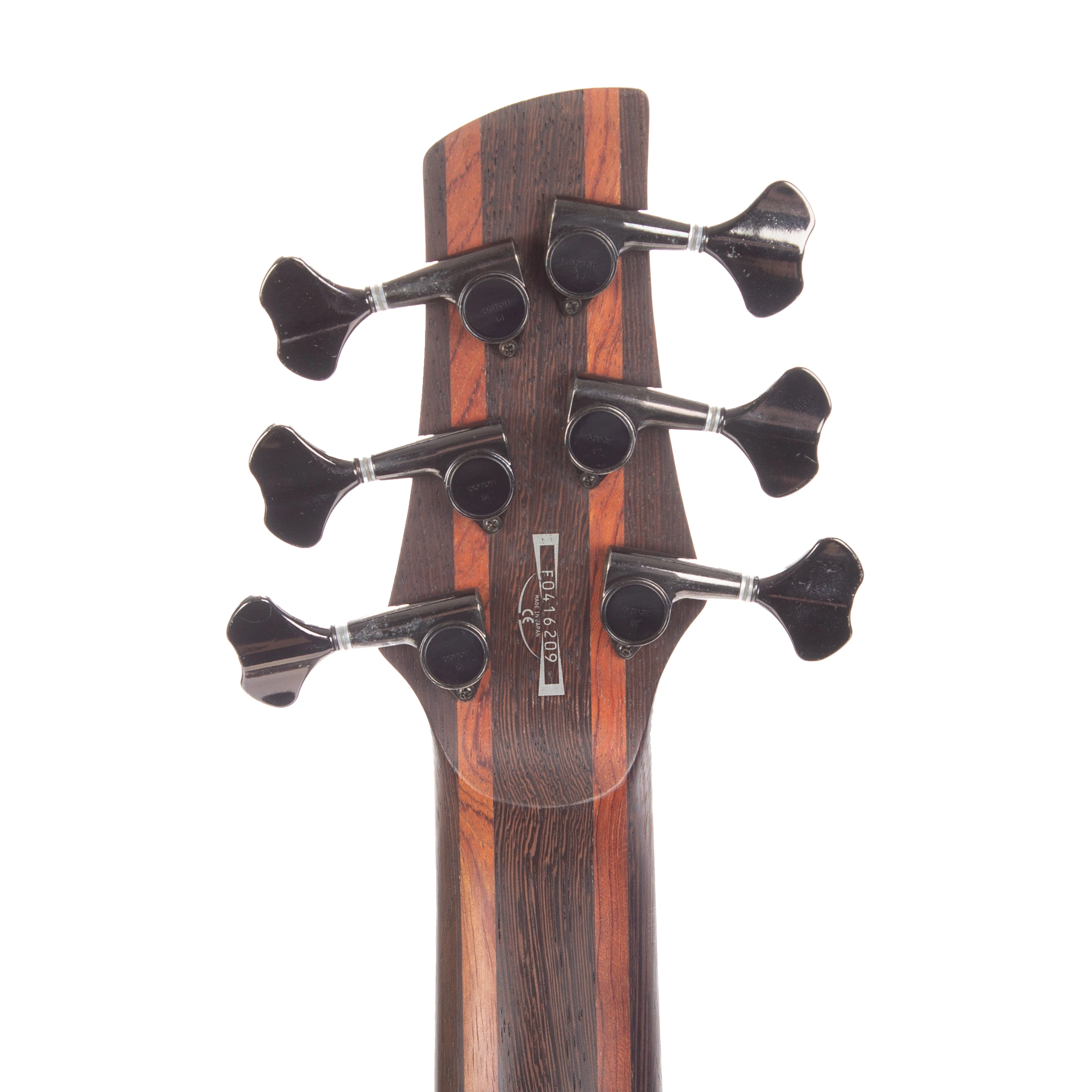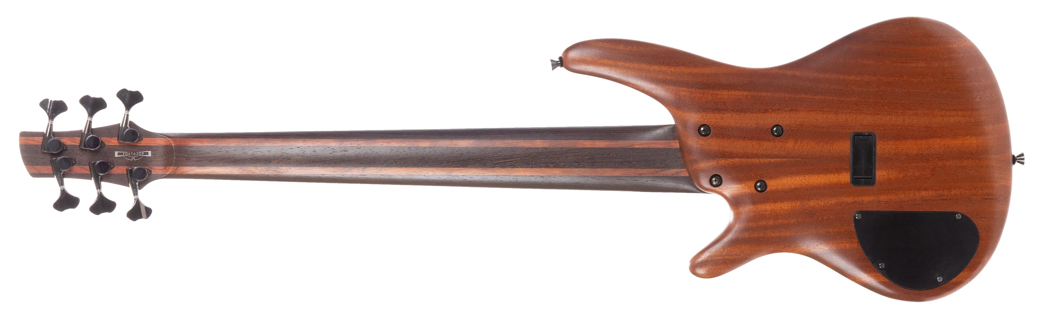The SR3006E features a double-cutaway mahogany body bolted to a wenge and bubinga neck with a 24-fret wenge fingerboard with abalone oval position markers and a matching headstock. Components include a pair of IBZ DXP-M(N/B)6 (active) pickup's on the neck and bridge positions, a Mono-rail fixed bridge with 10.8mm string spacing, a Vari-Mid 3-band EQ, a Graphtech Black TUSQ XL nut, Gotoh machine heads and cosmo black hardware.